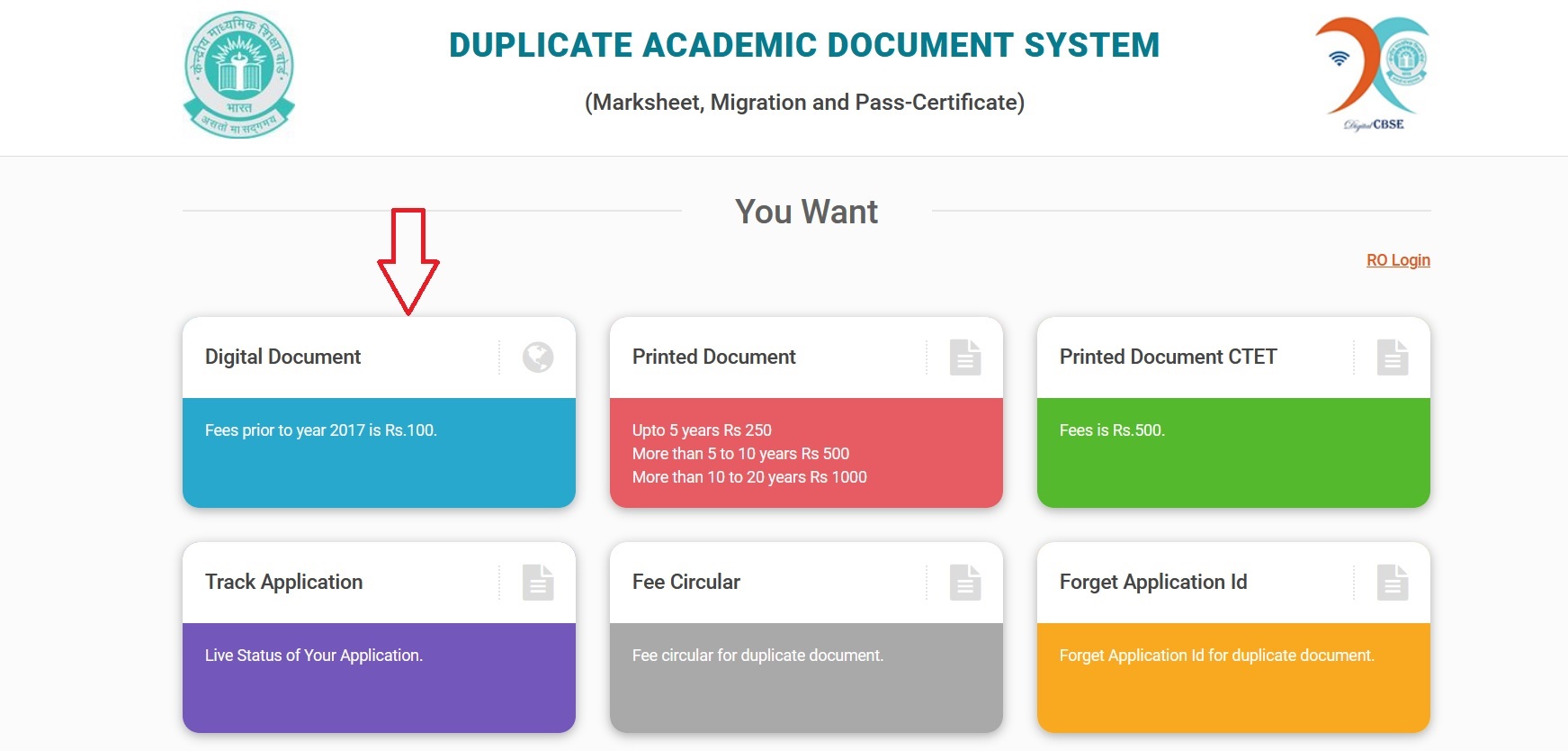 To download Digital Certificates of CBSE Exam, visit Duplicate Academic Document System (Marksheet, Migration and Pass-Certificate) and follow the below steps