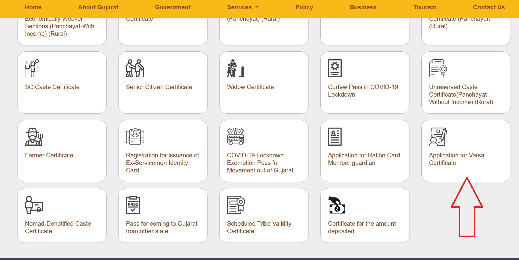 To Apply For Varsai Certificate in Gujarat, Follow the below steps