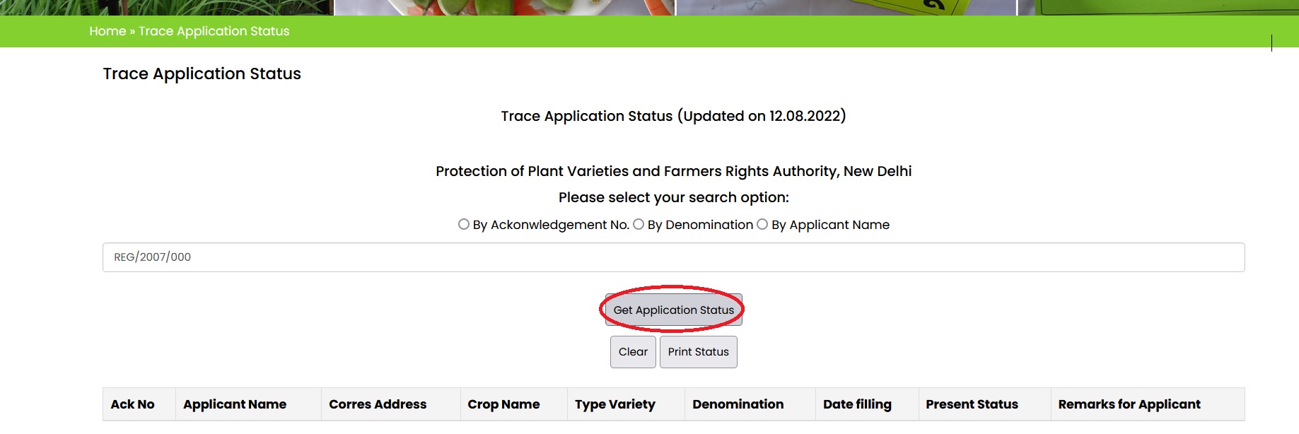 plantauthority.gov.in Trace Application Status : Plant Authority