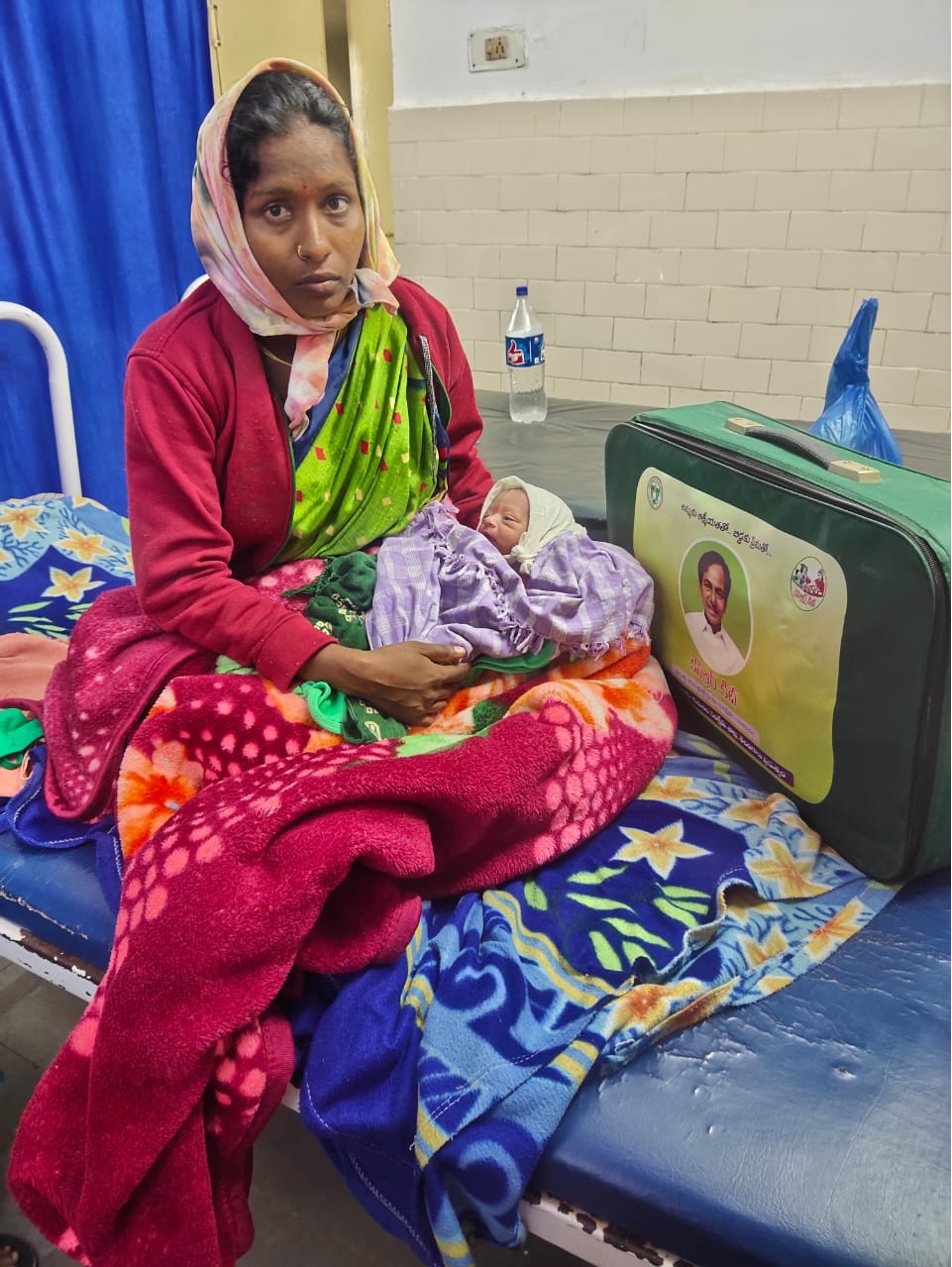 After the delivery for the well being of the mother and newborn the government is giving KCR Kit with 16 items. The Kit will have clothes, quality baby soaps, Baby oil, Baby powder, Mosquito net, toys, napkins, Diapers etc., which will be sufficient for three months. This is an affectionate gift given by the government to mother and child.