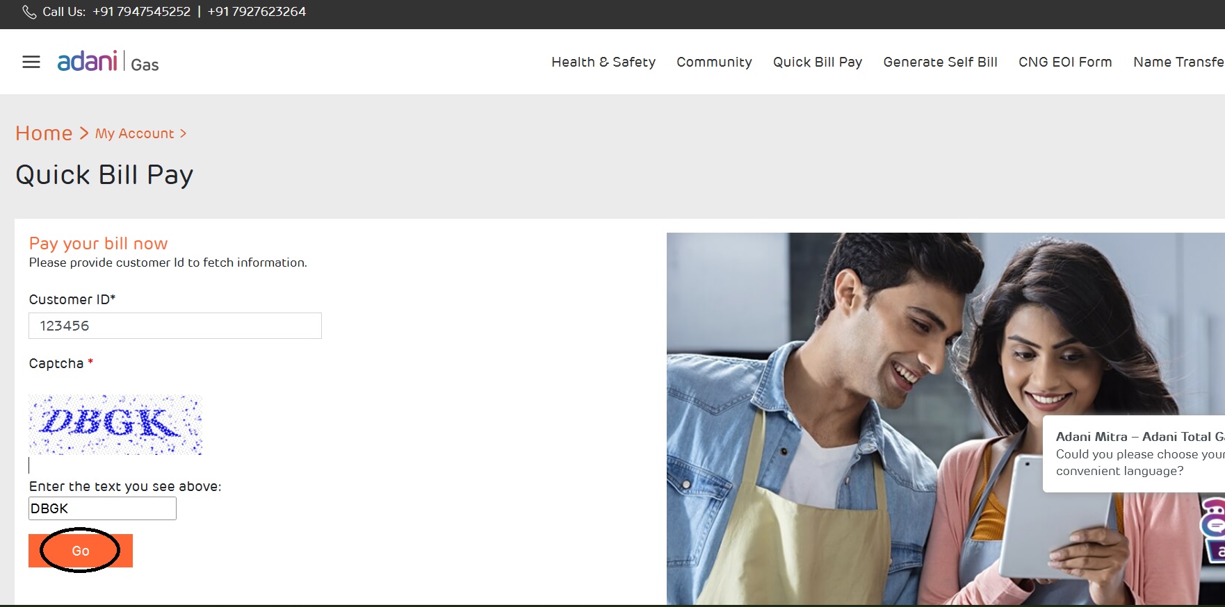 Step-1 : Go to the link https://www.adanigas.com/myaccount/quick-bill-pay