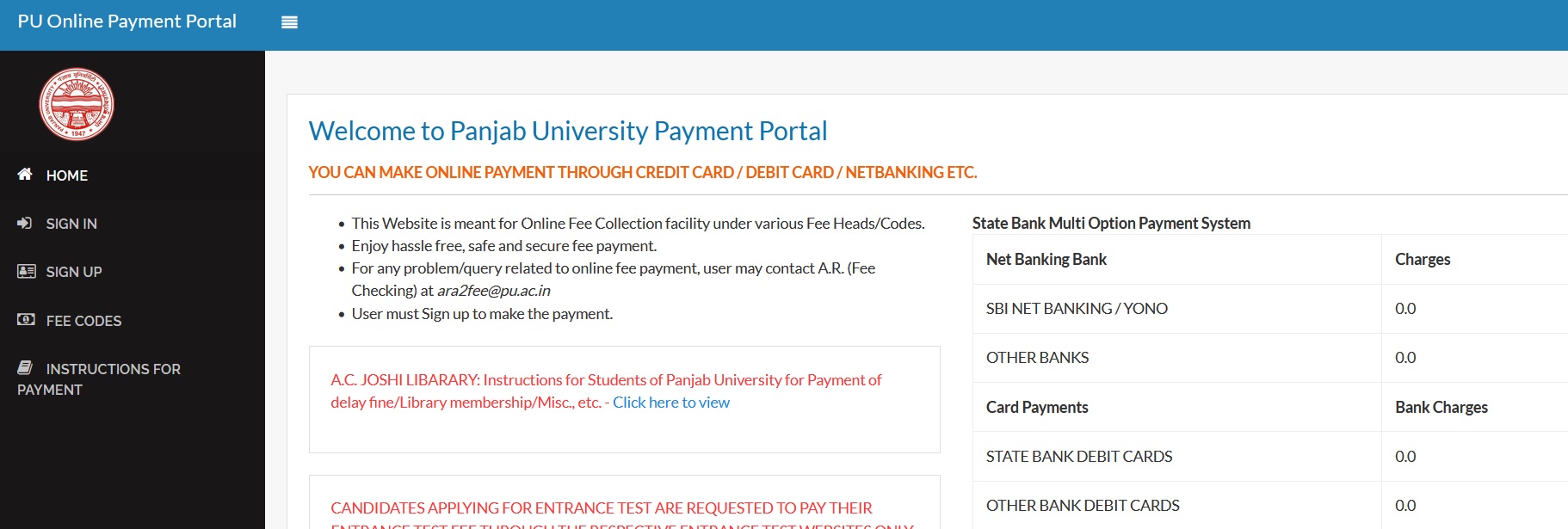 Instructions for Payment through Panjab University Online Payment Portal. Please read all the information carefully to make online payments to PU using this website.