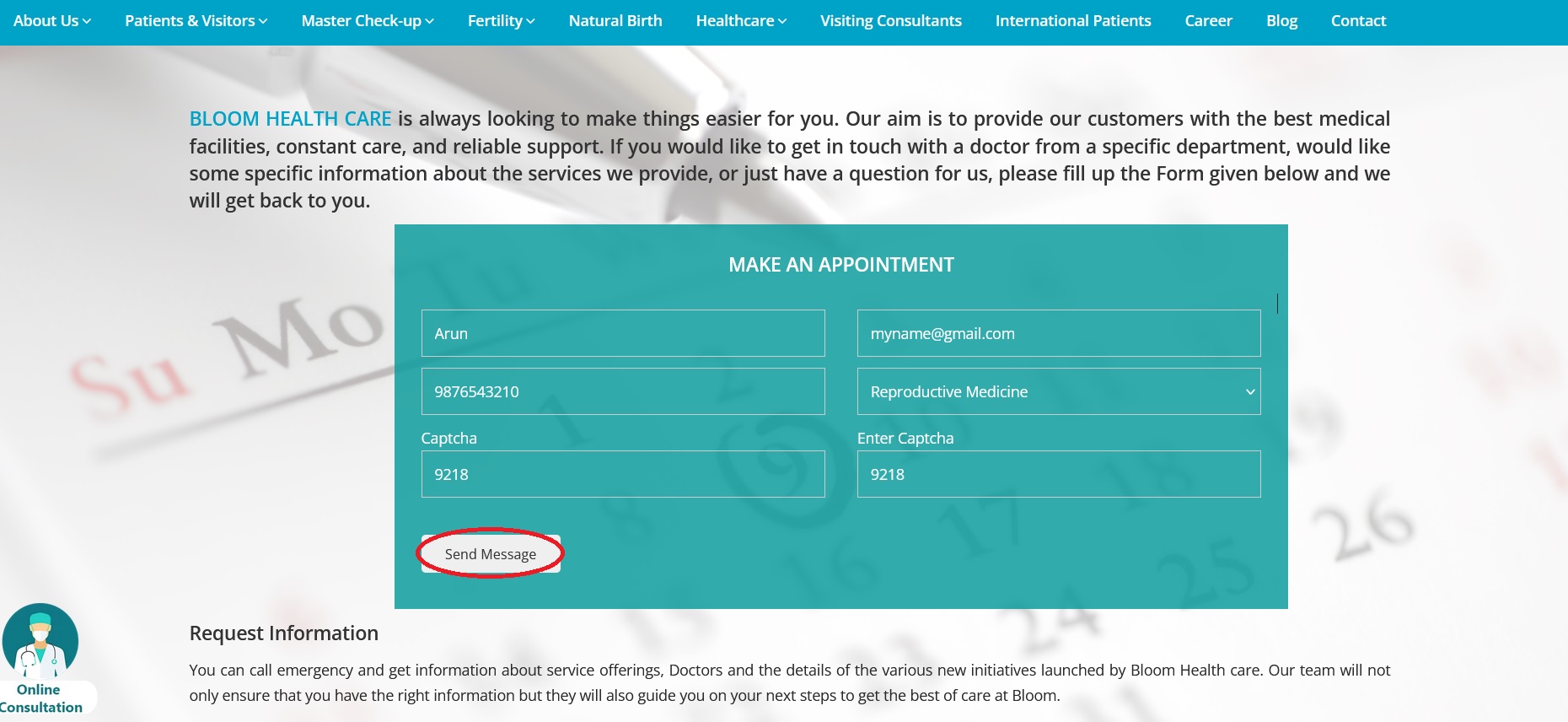 To fill Bloom Life Hospital Online Appointment Request Form, Follow the below steps
