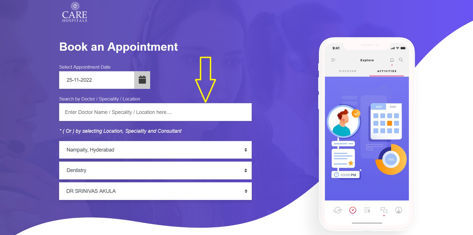 To Book CARE Hospitals Appointment Online, Follow the below steps