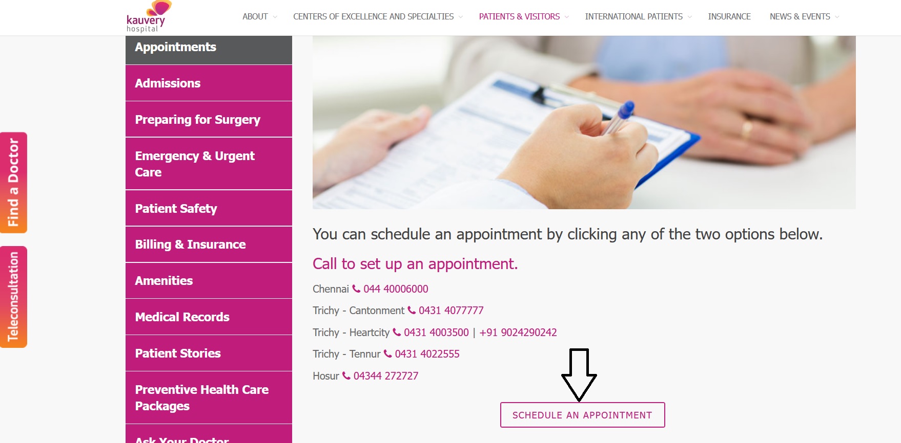 Step-1 : Go to the link https://www.kauveryhospital.com/patients-visitors/appointment