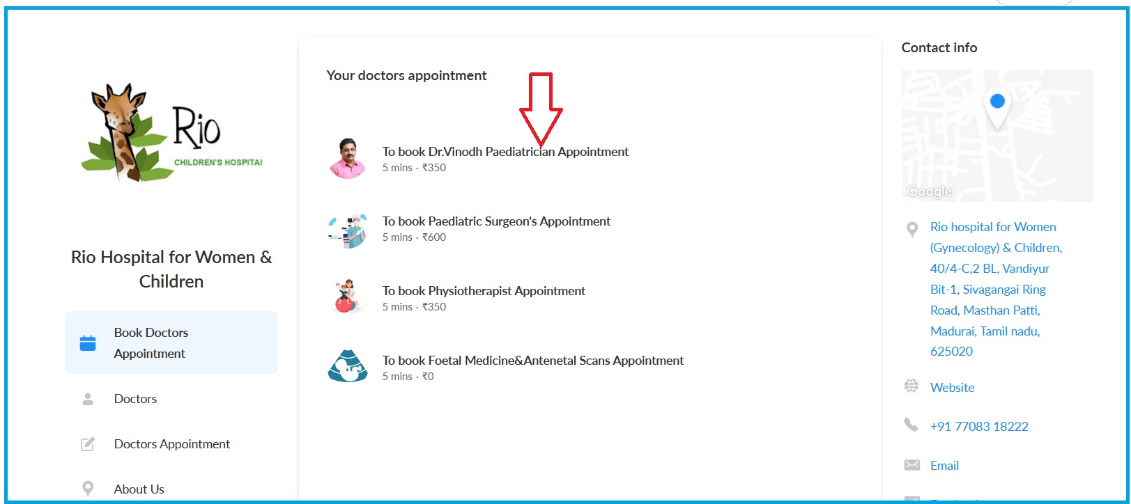 Rio Children Hospital Madurai Online Appointment Booking : riochildrenshospital.com