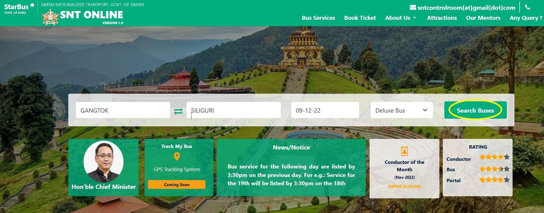 sntonline.sikkim.gov.in Book Ticket Online : SNT Nationalized Transport