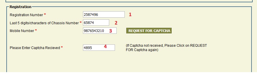 1. Enter Registration Number * [258794]