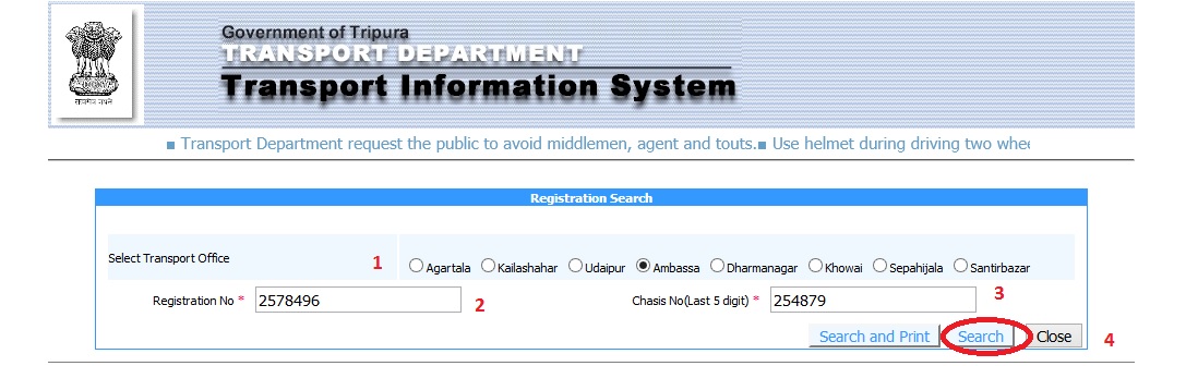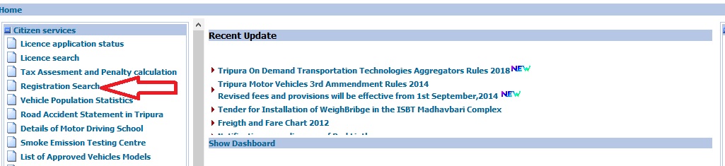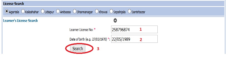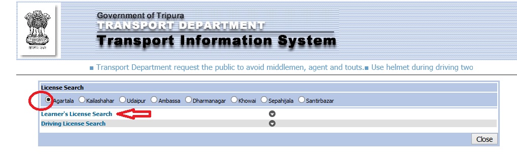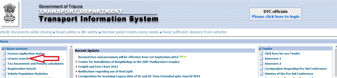 Search License and License Registration for Tiripura transport department TSU. Go to the official website,click on the License Search option in home page.