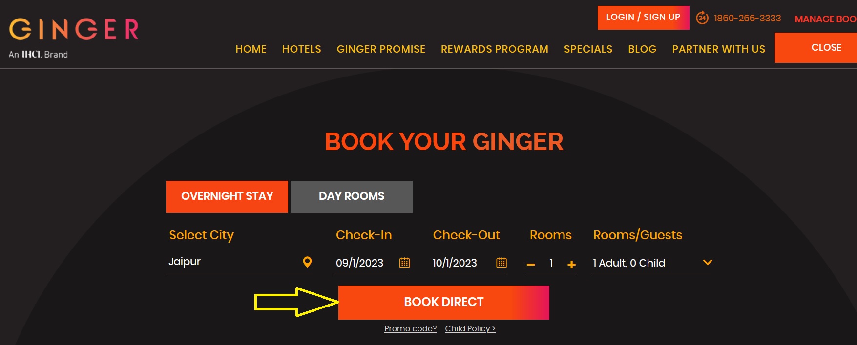 Step-4 : Click on the button “Book Direct” to book your room online.