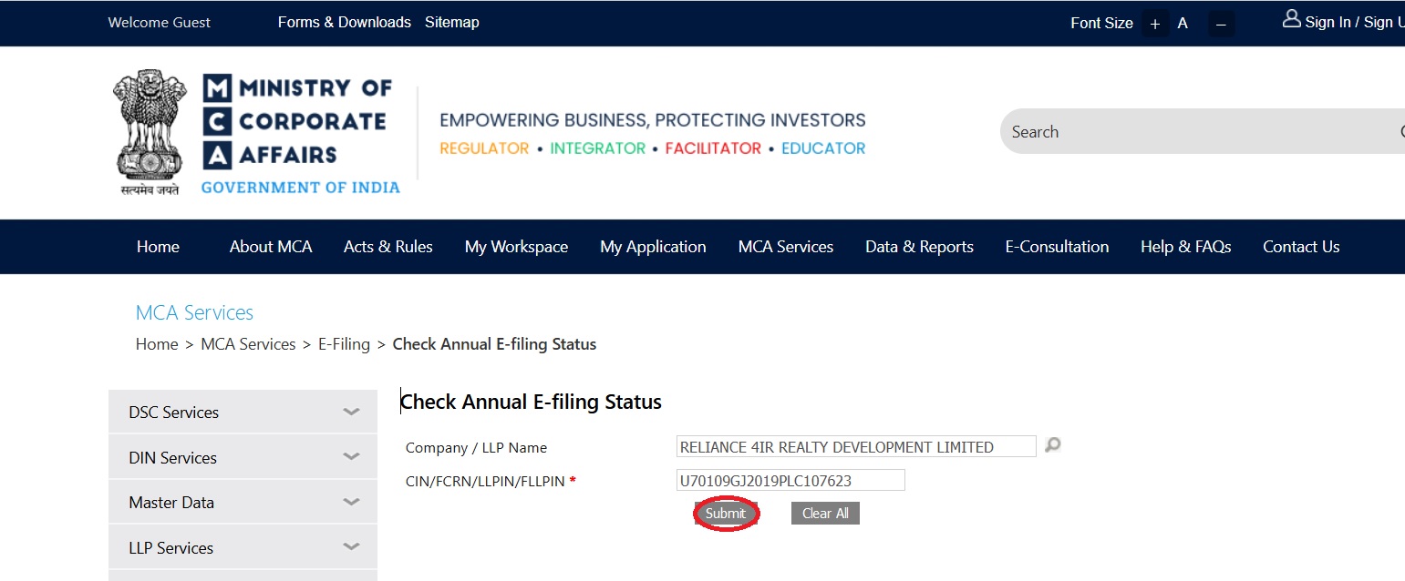 Step-3 : Enter the CIN/FCRN/LLPIN/FLLPIN