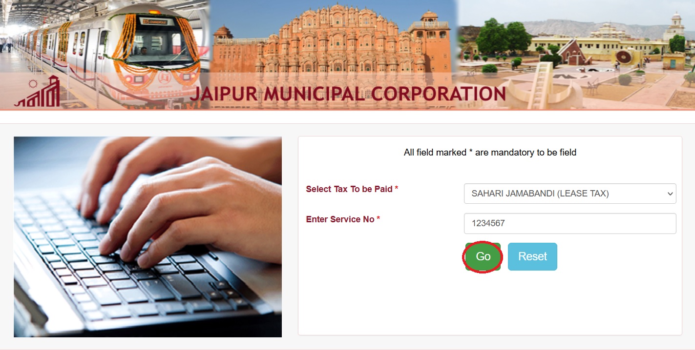Step-1 : Go to the link http://lease.jaipurmc.org/DueDemandDetail/OnlineLeaseDemandMultiSearch