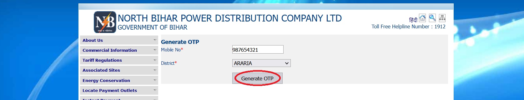 ** Enter Mobile Number, Select Your District and Click on Generate OTP Button.