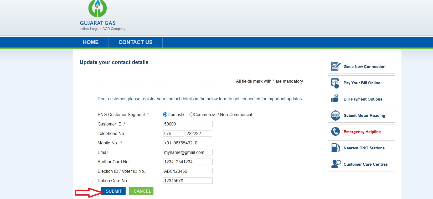 To update Contact Details in Gujarat Gas, Follow the below steps