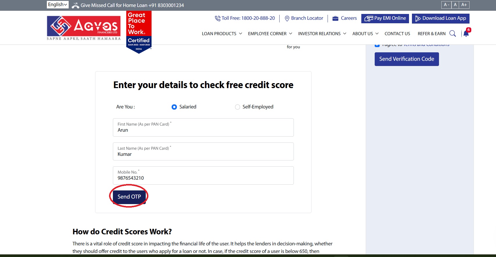 Step-1 : Go to the link https://www.aavas.in/check-free-credit-score