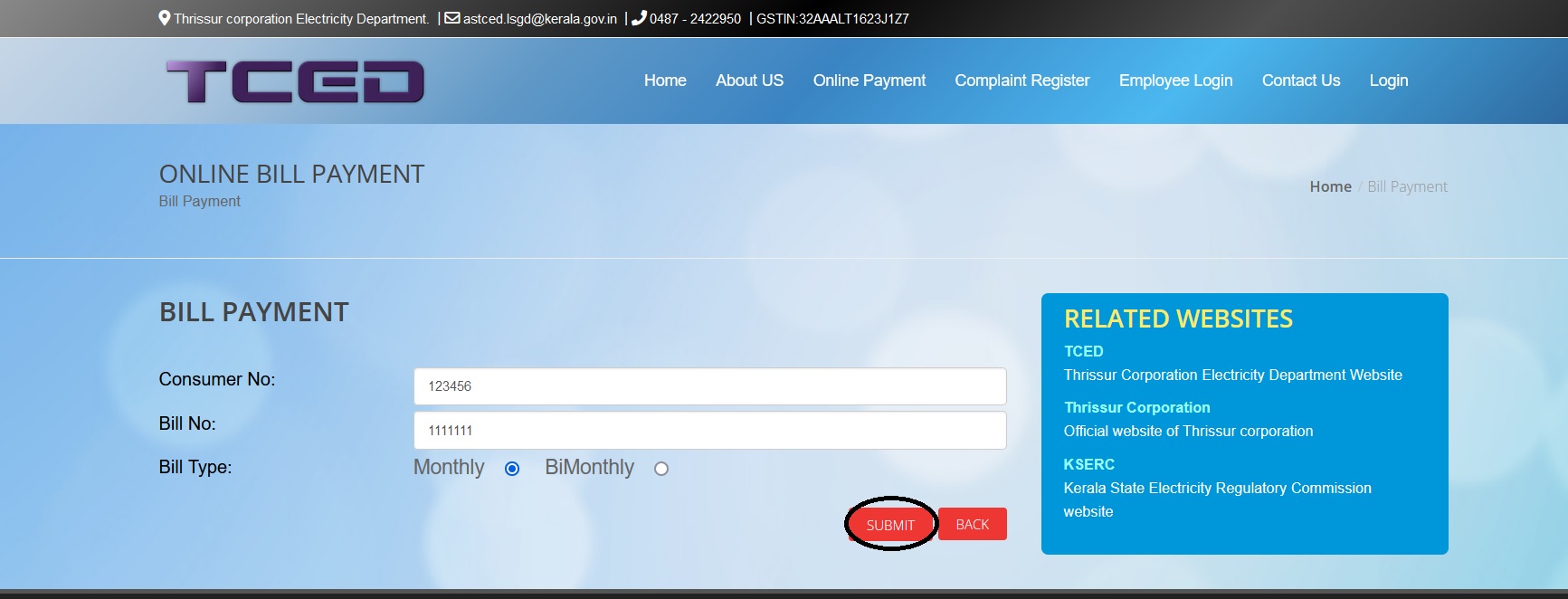 TCED Online Bill Payment Thrissur : tcedonline.in