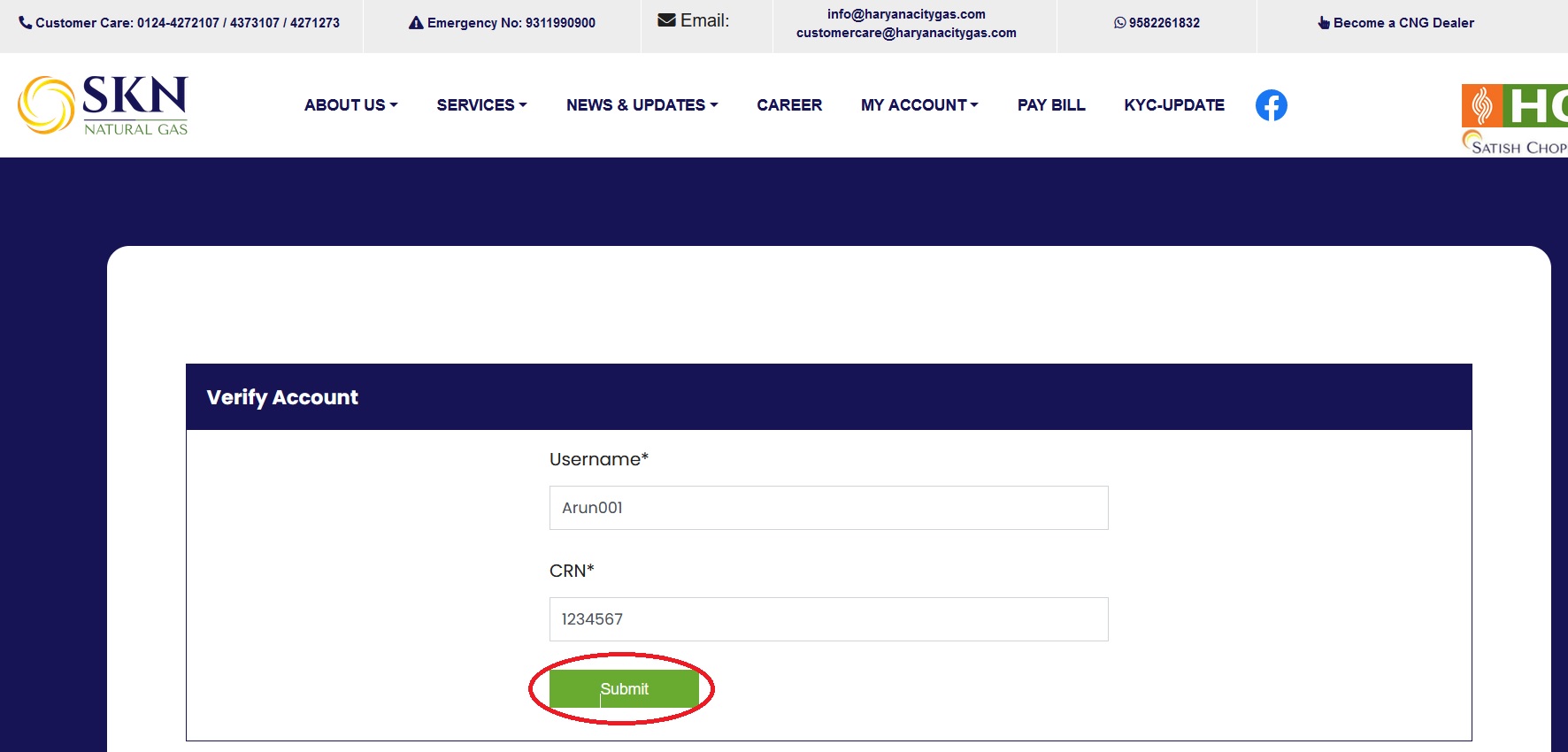 Step-1 : Go to the link https://haryanacitygas.com/verify