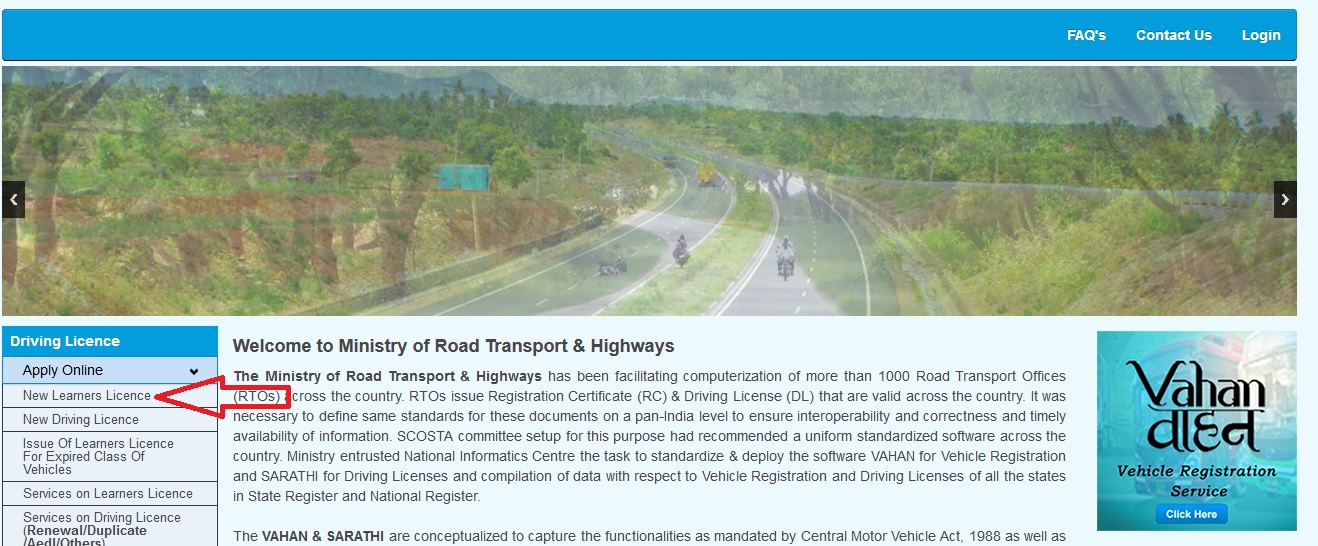 sarathi.nic.in Apply for Learner/ Driving Licence : Ministry of Road Transport & Highways