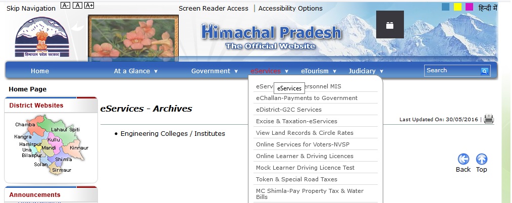 ** Open the eServices Portal on the following URL eserviceshp.gov.in