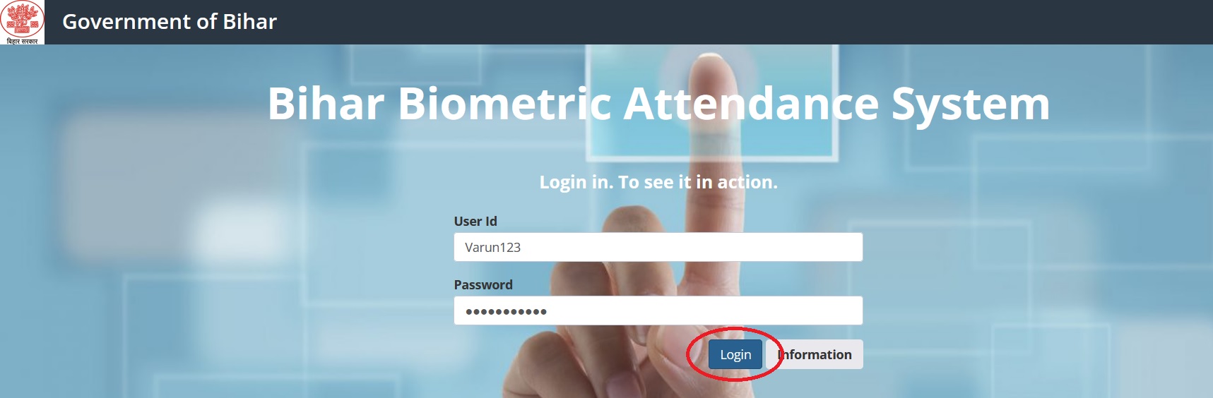 To Login To Bihar Biometric Attendance System, Follow the below steps