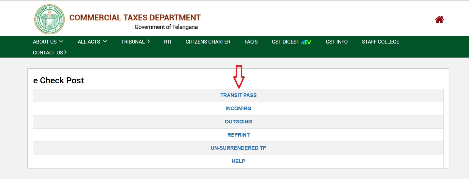 TGCT eCheck Post /eTransit Pass : Telanagana Commercial Taxes