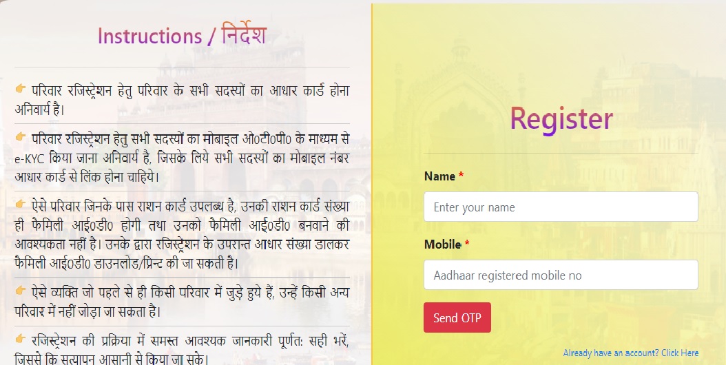 Website : https://familyid.up.gov.in/portal/registration.aspx
