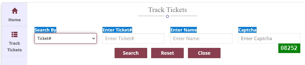 Steps 1: Select Search By Option (Ticket/ Phone Number)