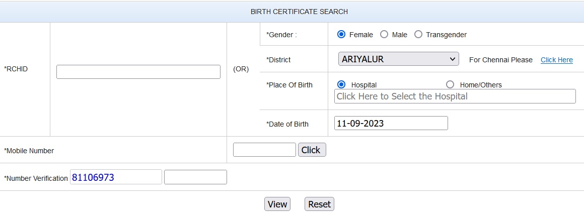 ** Either RCH ID or Gender, District, Place of Birth and Date of Birth