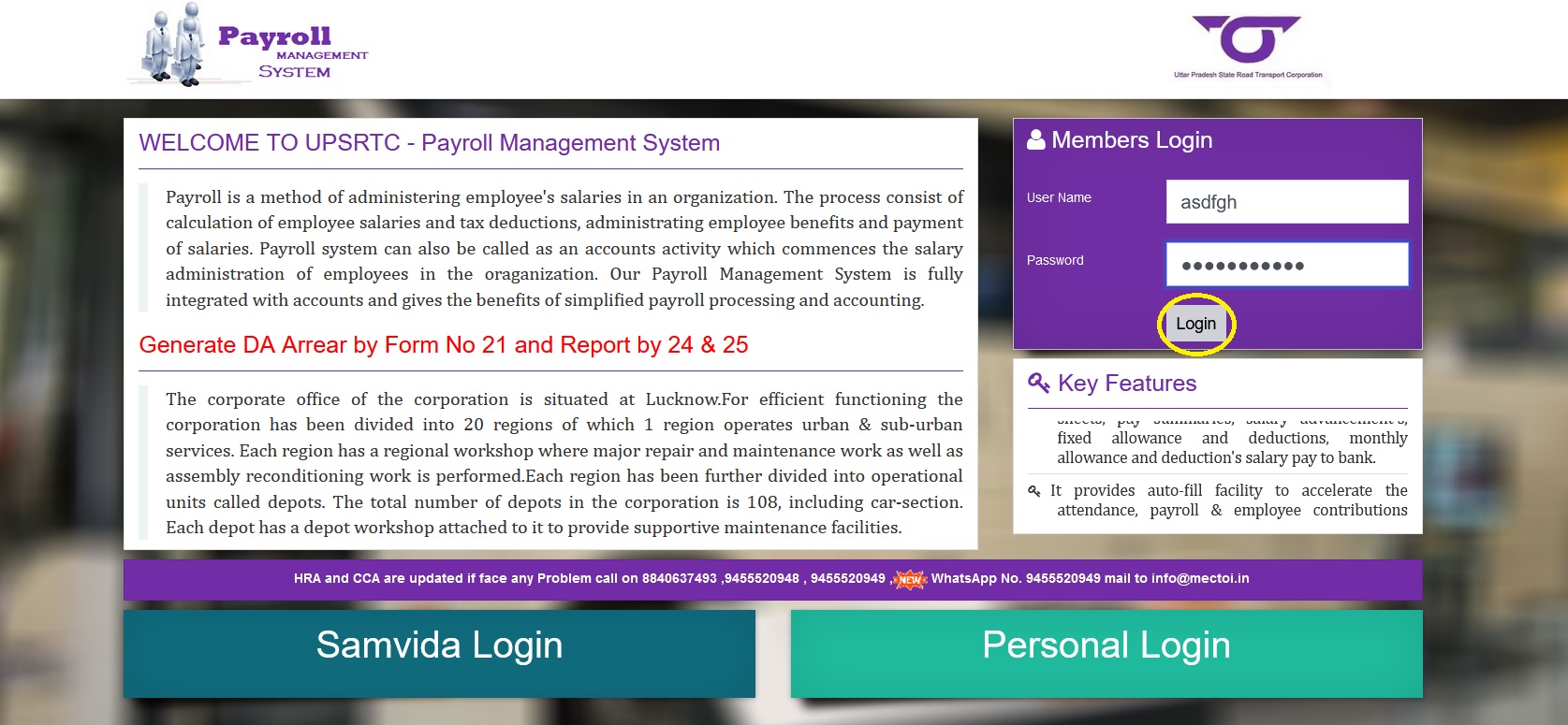 ** If you are still having trouble logging in, contact the UPSRTC Payroll Management System administrator for assistance.