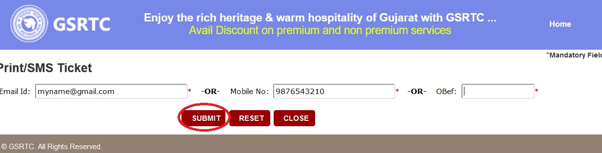 To Print Gujarat State Road Transport Corporation (GSRTC) Ticket Online, Follow the below steps