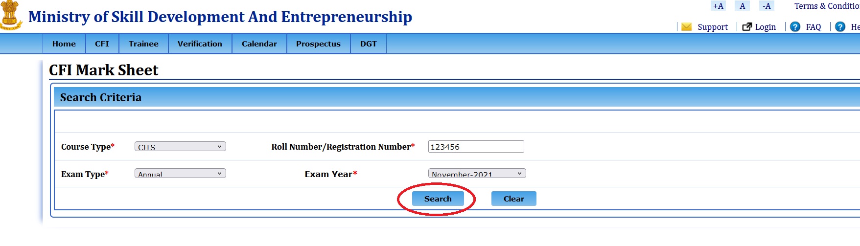 To Search NCVTMIS CFI Mark Sheet Online, Follow the below steps