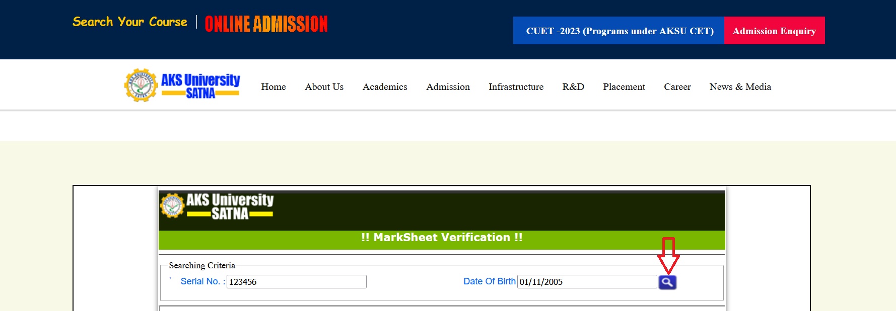 AKS University Satna MarkSheet Verification : aksuniversity.ac.in