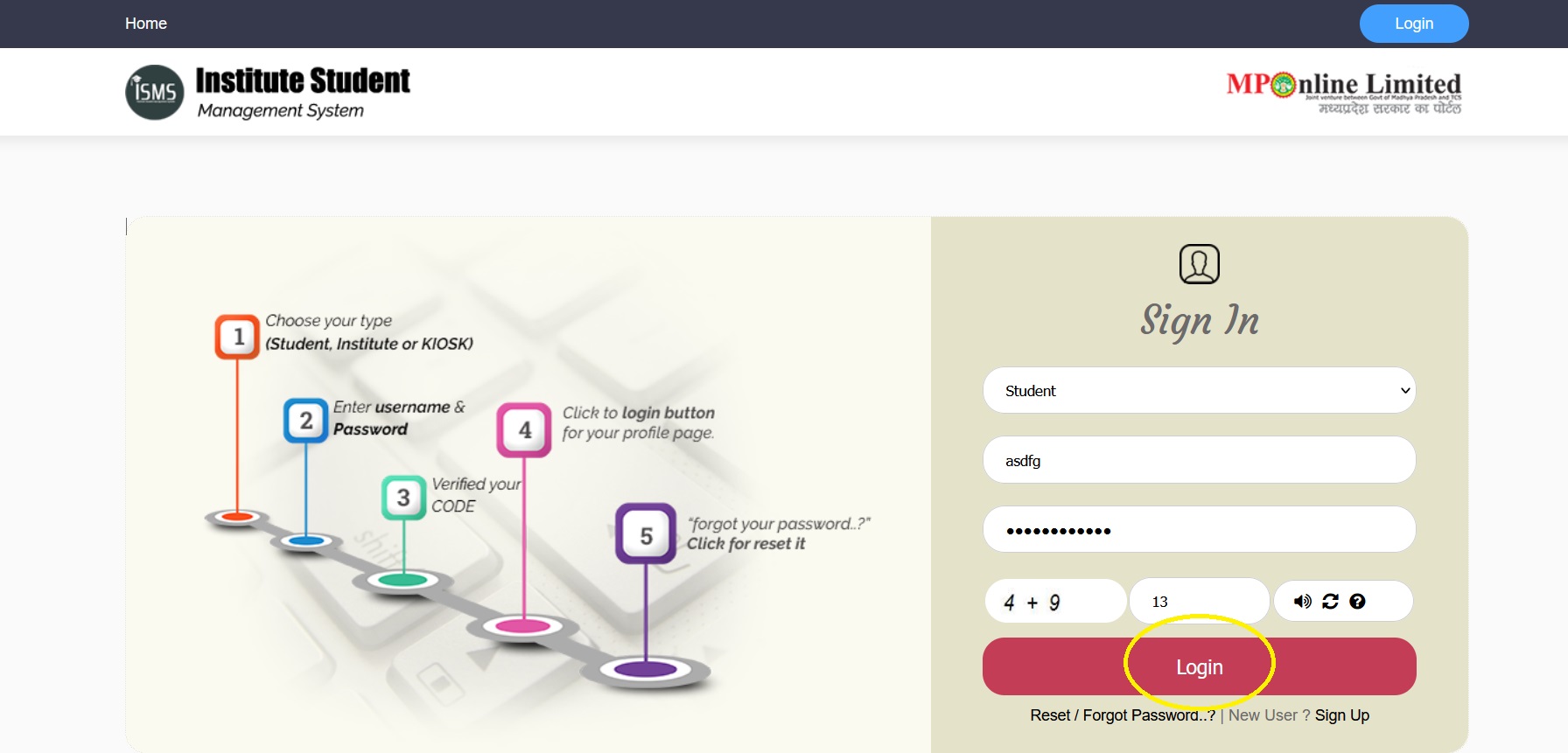 Step-1 : Go to the link https://isms.mponline.gov.in/Portal/frmLogin.aspx