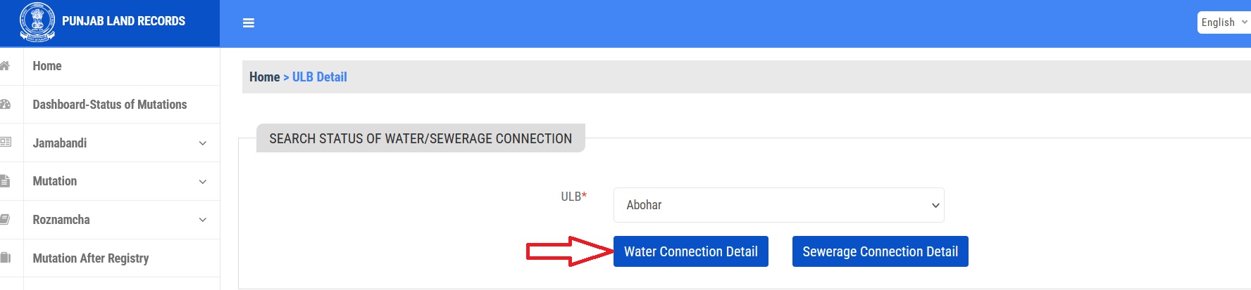 Jamabandi Punjab : Search Status of Water/Sewerage Connection