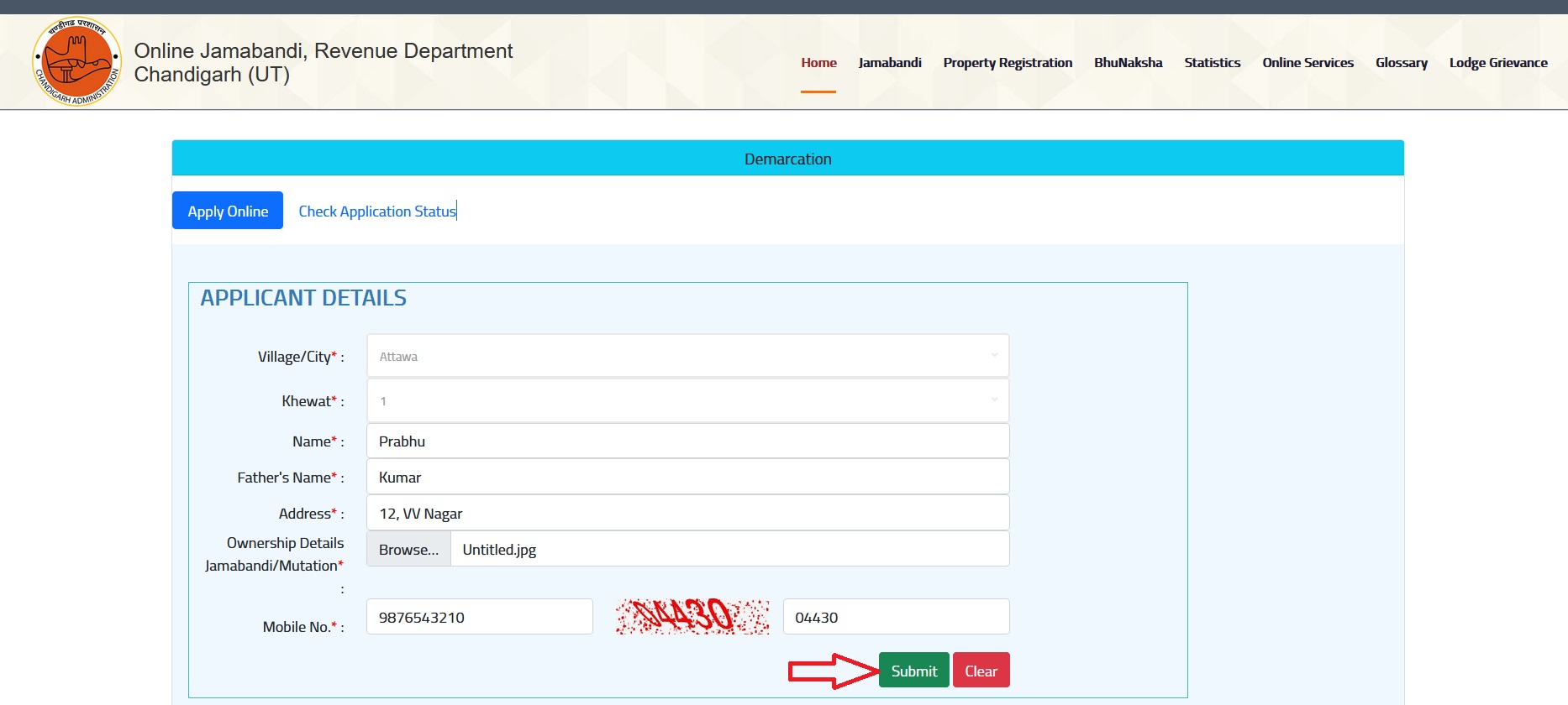 Chandigarh Jamabandi : Apply For Demarcation & Track Status Online
