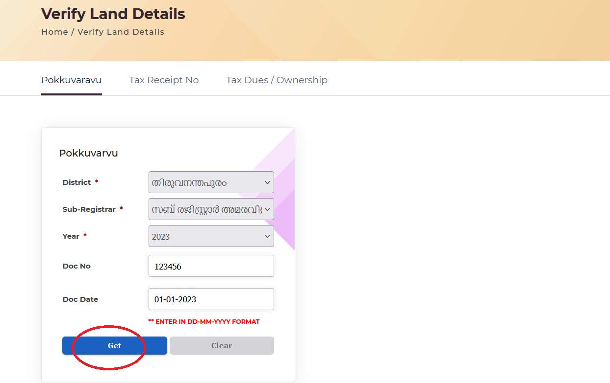 Kerala Revenue : Verify Land Details Pokkuvaravu Online