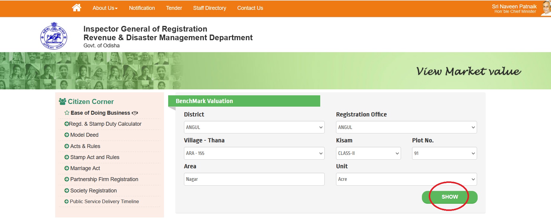 To search IGR Odisha Property Benchmark Valuation online, Follow the below steps