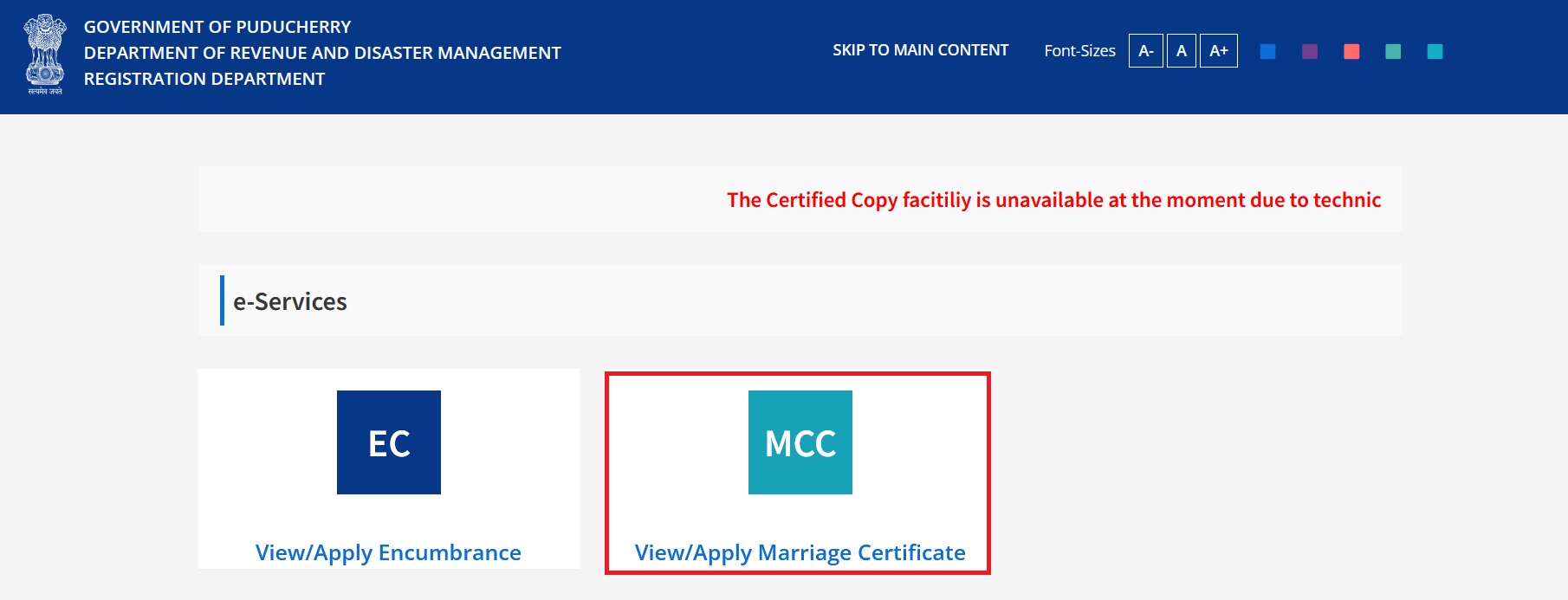 regnec.py.gov.in : Download MCC Marriage Certificate Copy Online Puducherry