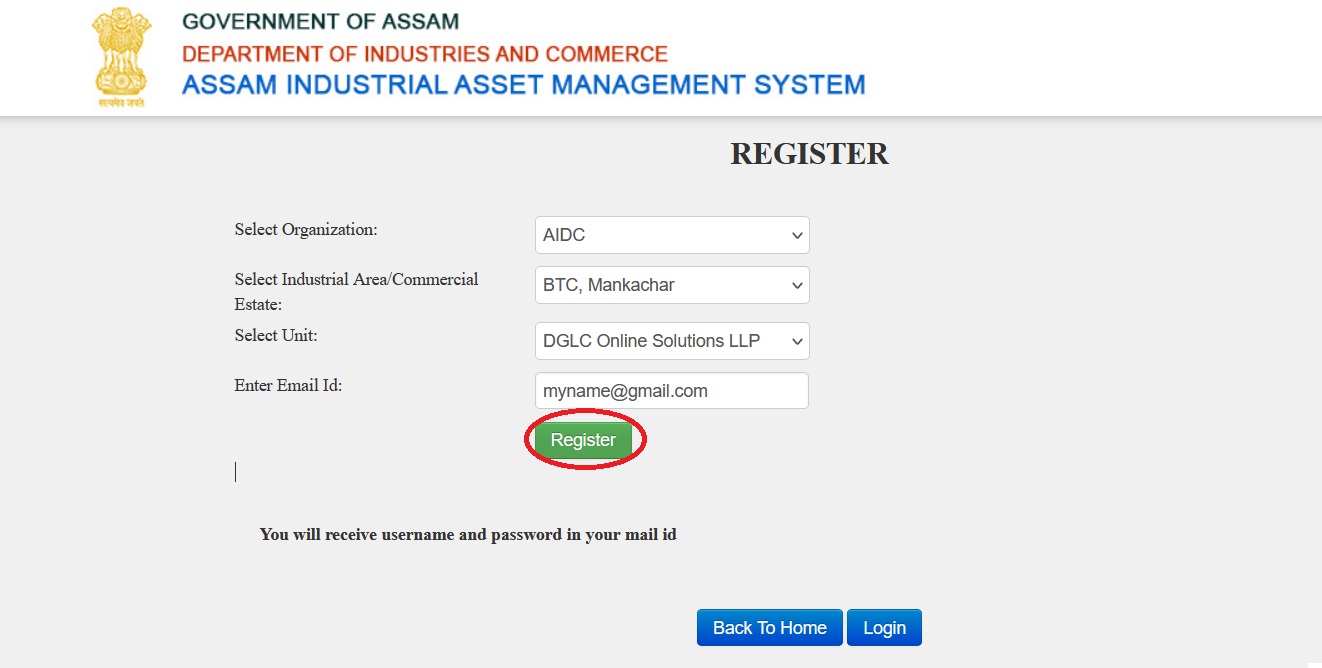 To register at Assam Industrial Asset Management System, Follow the below steps