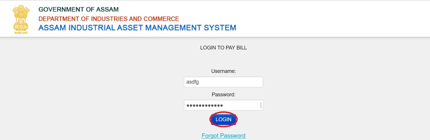 To pay bill through Assam Industrial Asset Management System, Follow the below steps