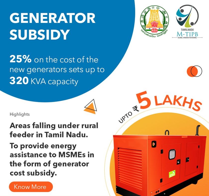 Website : https://www.msmetamilnadu.tn.gov.in/generator-subsidy.php