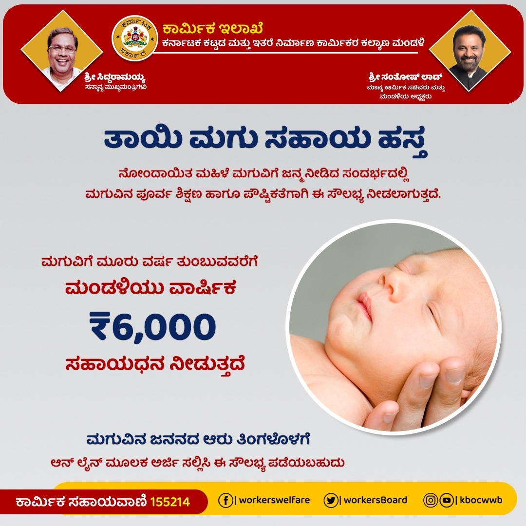 karbwwb.karnataka.gov.in : KBOCWWB Thayi Magu Sahaya Hastha Scheme