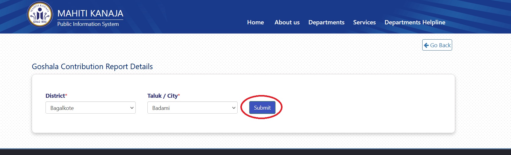 To View Goshala Contribution Report Details Online at Mahiti Kanaja Karnataka, Follow the below steps