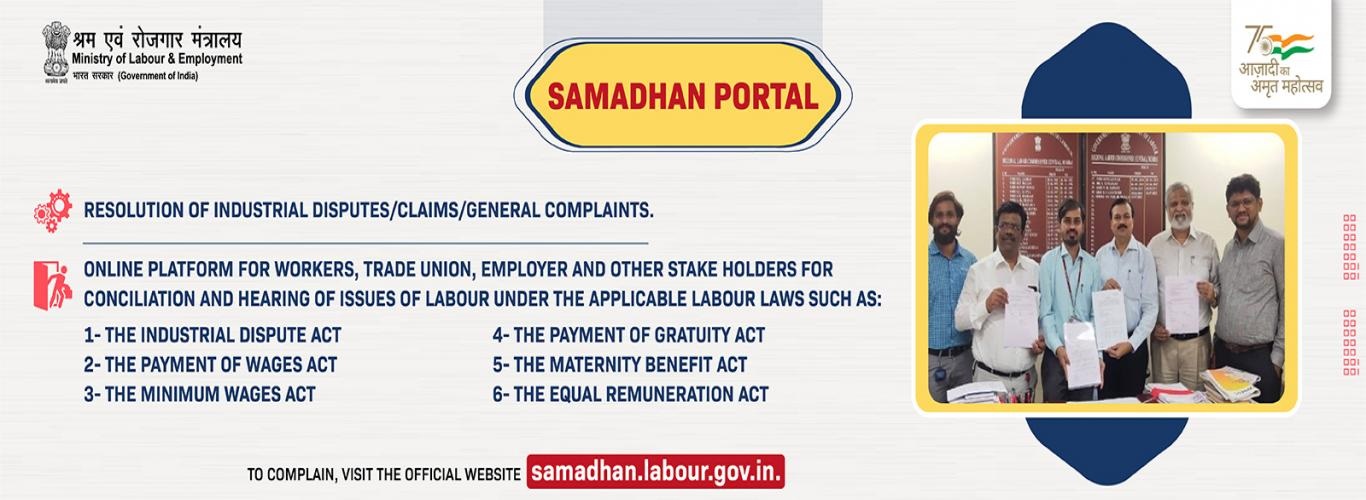 SAMADHAN Portal is a digital initiative of Ministry of Labour and Employment to make the system transparent and more efficient and to make the life of workmen/union and other stakeholders smooth by giving them a single platform for raising their grievance in the form of industrial dispute, charter of demand, claims under applicable labour laws and other grievances related to employment.