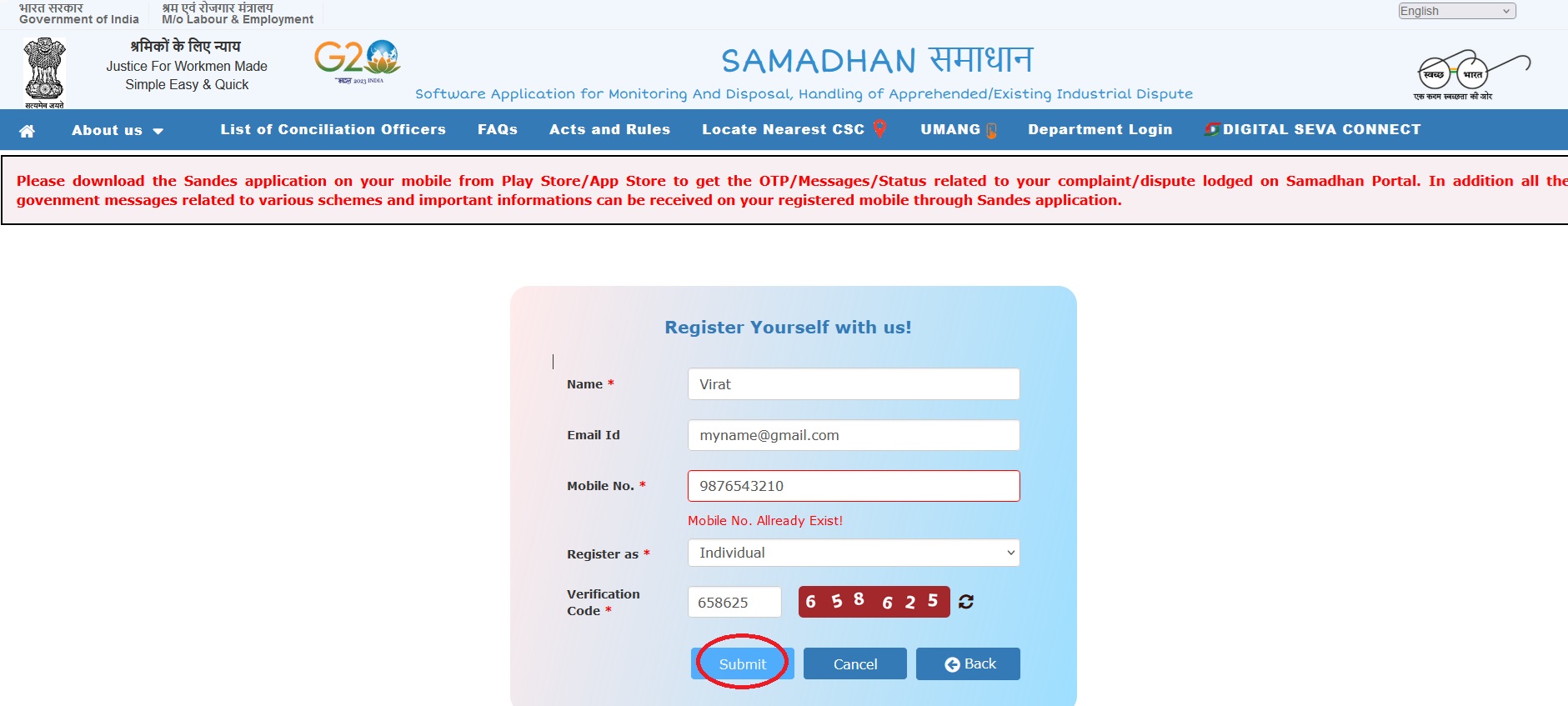 Please download the Sandes application on your mobile from Play Store/App Store to get the OTP/Messages/Status related to your complaint/dispute lodged on Samadhan Portal. In addition all the govenment messages related to various schemes and important informations can be received on your registered mobile through Sandes application.