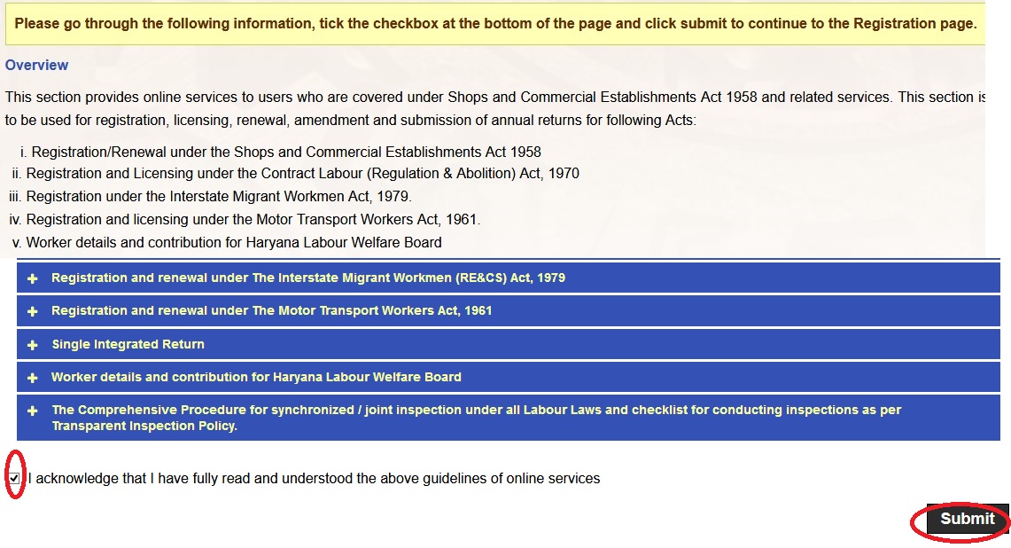 hrylabour.gov.in Guidelines for Online Registration of Shops Haryana : Labour Department