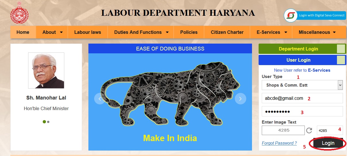 Haryana Labour Online Factories Registration/Licensing/Renewal