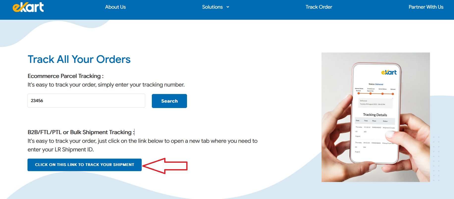 Step-1 : Go to the link https://sea.fareye.co/track.html?com_code=ekart&pm_Id=1385&track_page_version=v2