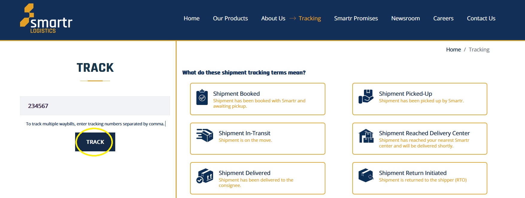 Shipment has reached your nearest Smartr center and will be delivered shortly.