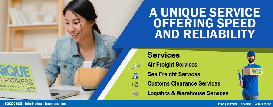 Unique Air Express, an International Courier & Cargo Company having offices in Pune, Mumbai, (Maharashtra) & Bangalore, (Karnataka), India with a PAN India Delivery network. We have developed our products to serve Individuals as well as the corporate customers.
